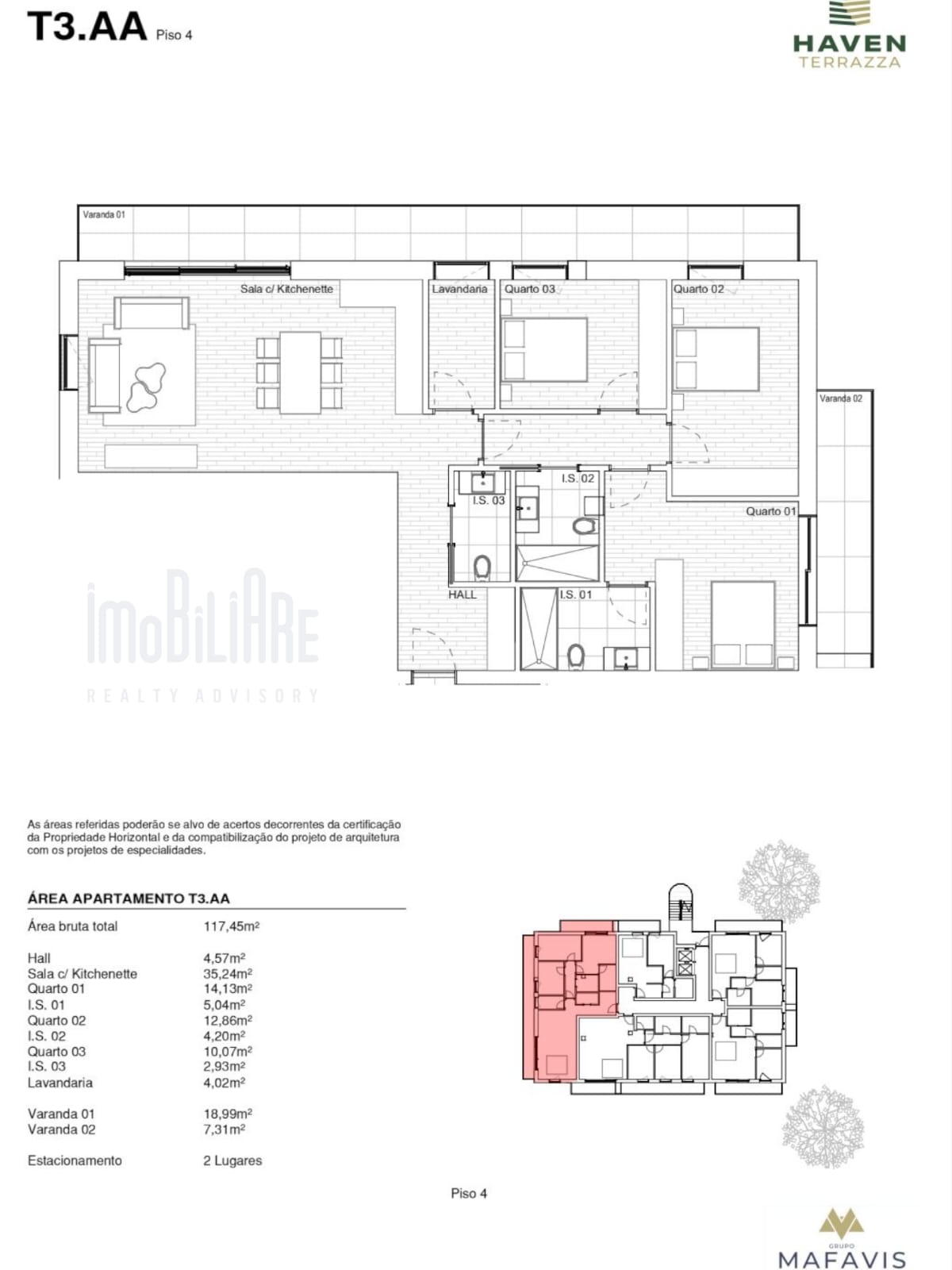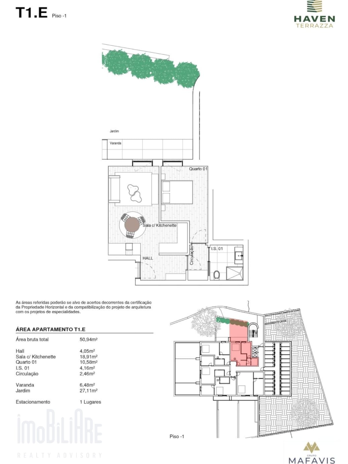 The predominant typologies are T1, T2 and T3, with a garden or terrace or balcony, with one parking space allocated for T1 and two parking spaces for the remaining T2 and T3 typologies.