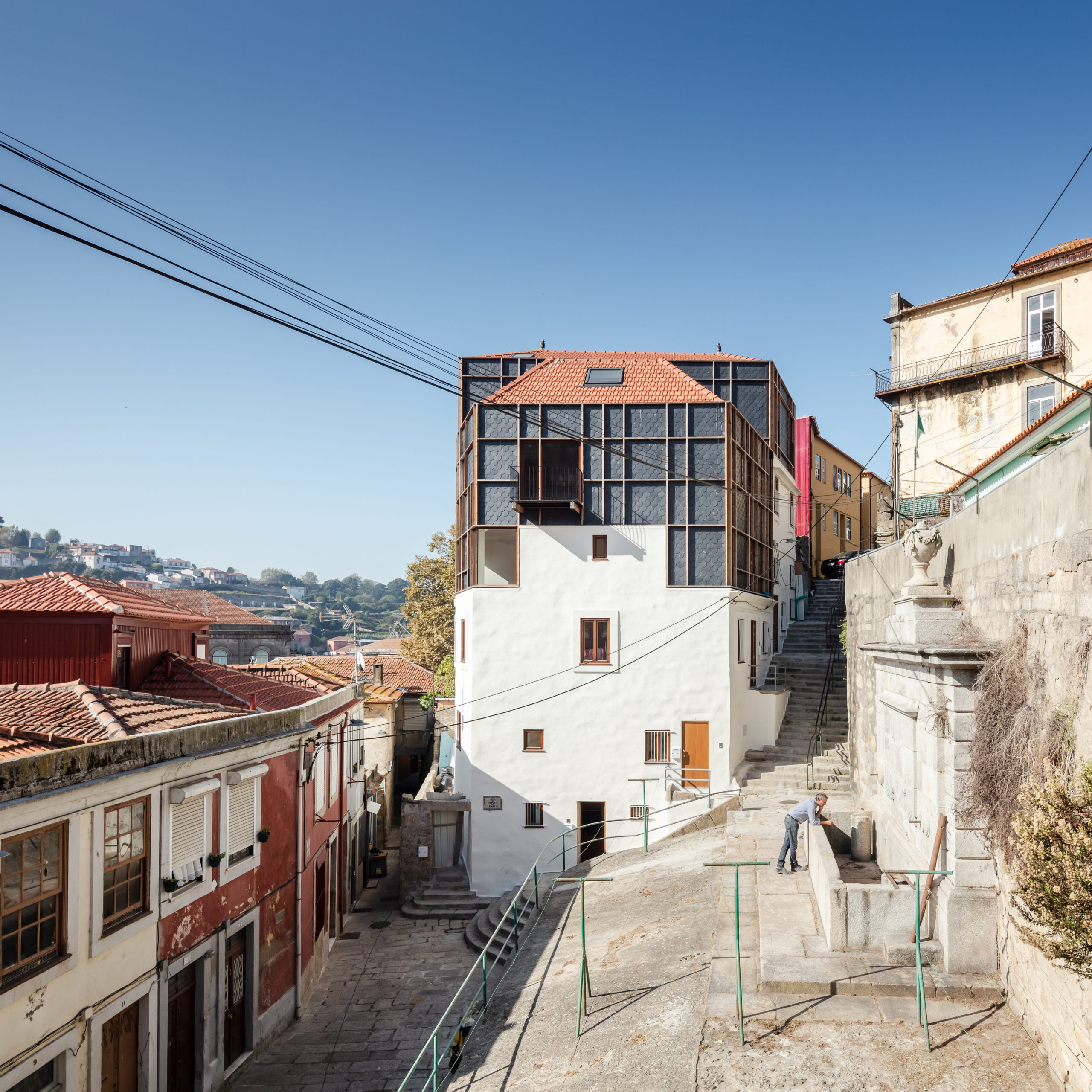 Integrated in the existing topography and irregular morphology of Miragaia, the geometric shape of the building clearly identifies with the Hebrew ancestry and Jewish culture of Porto associated with the Jewish settlement of Monchique that includes a synagogue and a Jewish cemetery