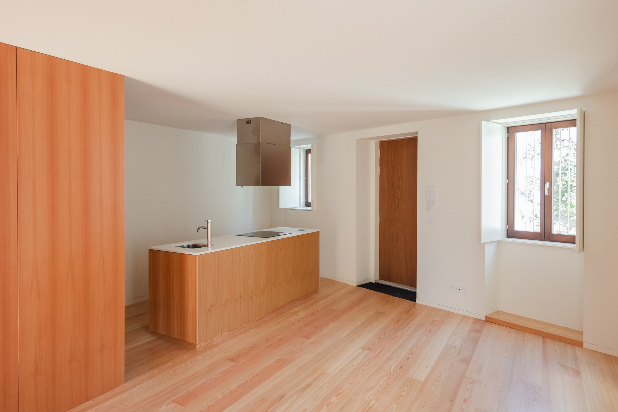 The dwellings are conceived as open, multifunctional and flexible. By fixing the means of circulation and rationalising the distribution of space, it makes these small flats with excellent ventilation, lighting and views over the Douro River profitable. By adjusting the formal and material languages with the desire to extend in time, the intervention is balanced by the evocative yet figurative desire for an architecture of the future.