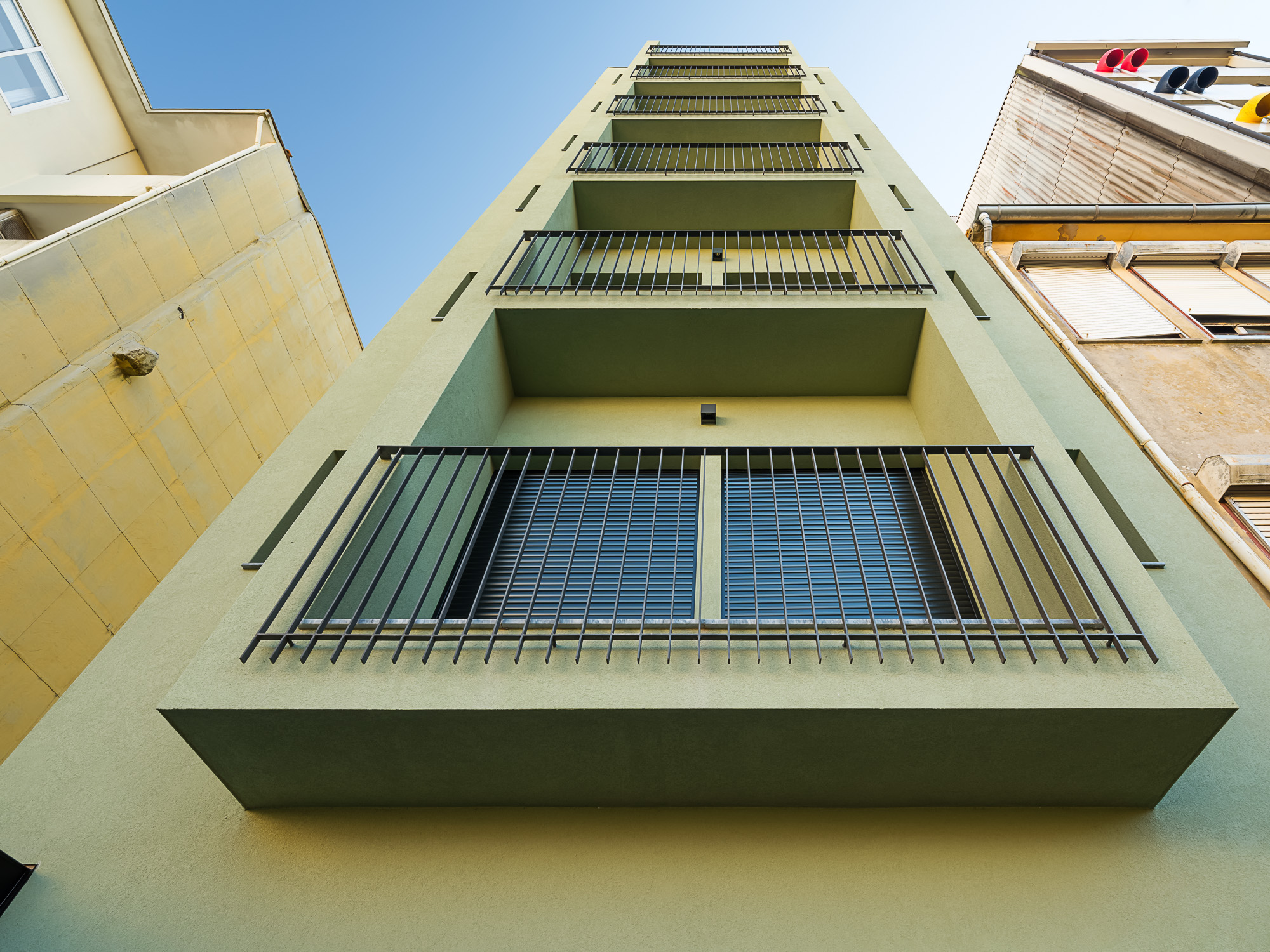 7-storey building with two fronts, including two commercial and service units, with predominantly 1 and 2 bedroom homes.