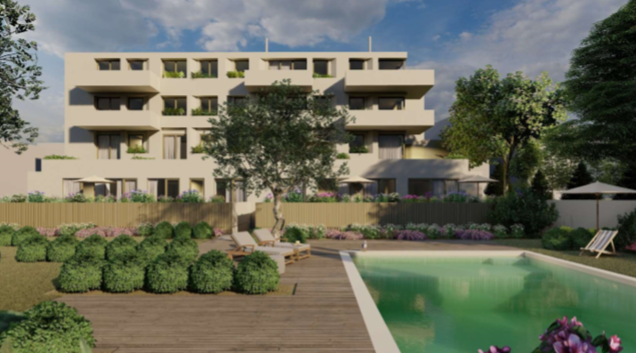 To the west of the building is a 650m2 communal garden with an outdoor swimming pool.