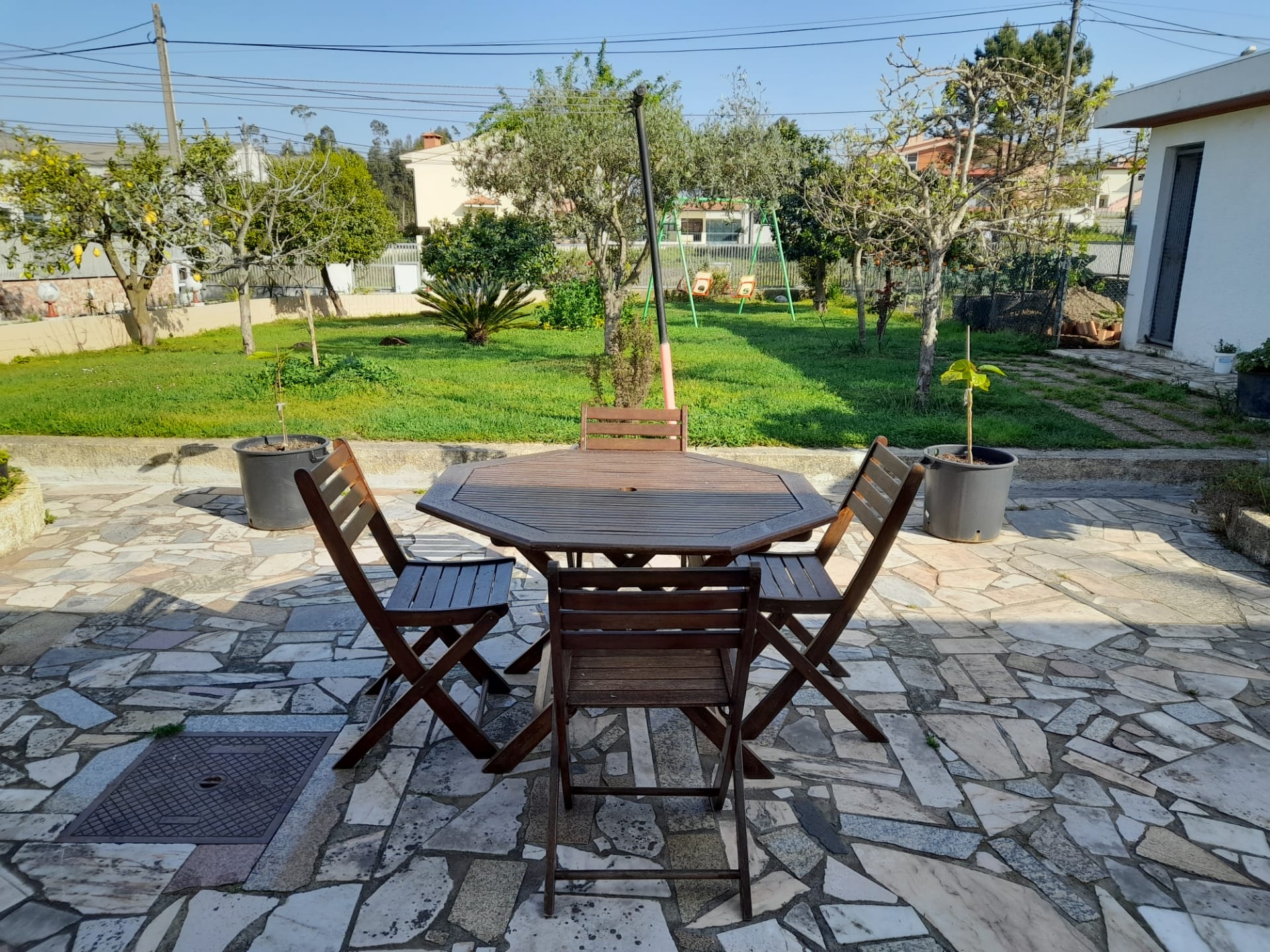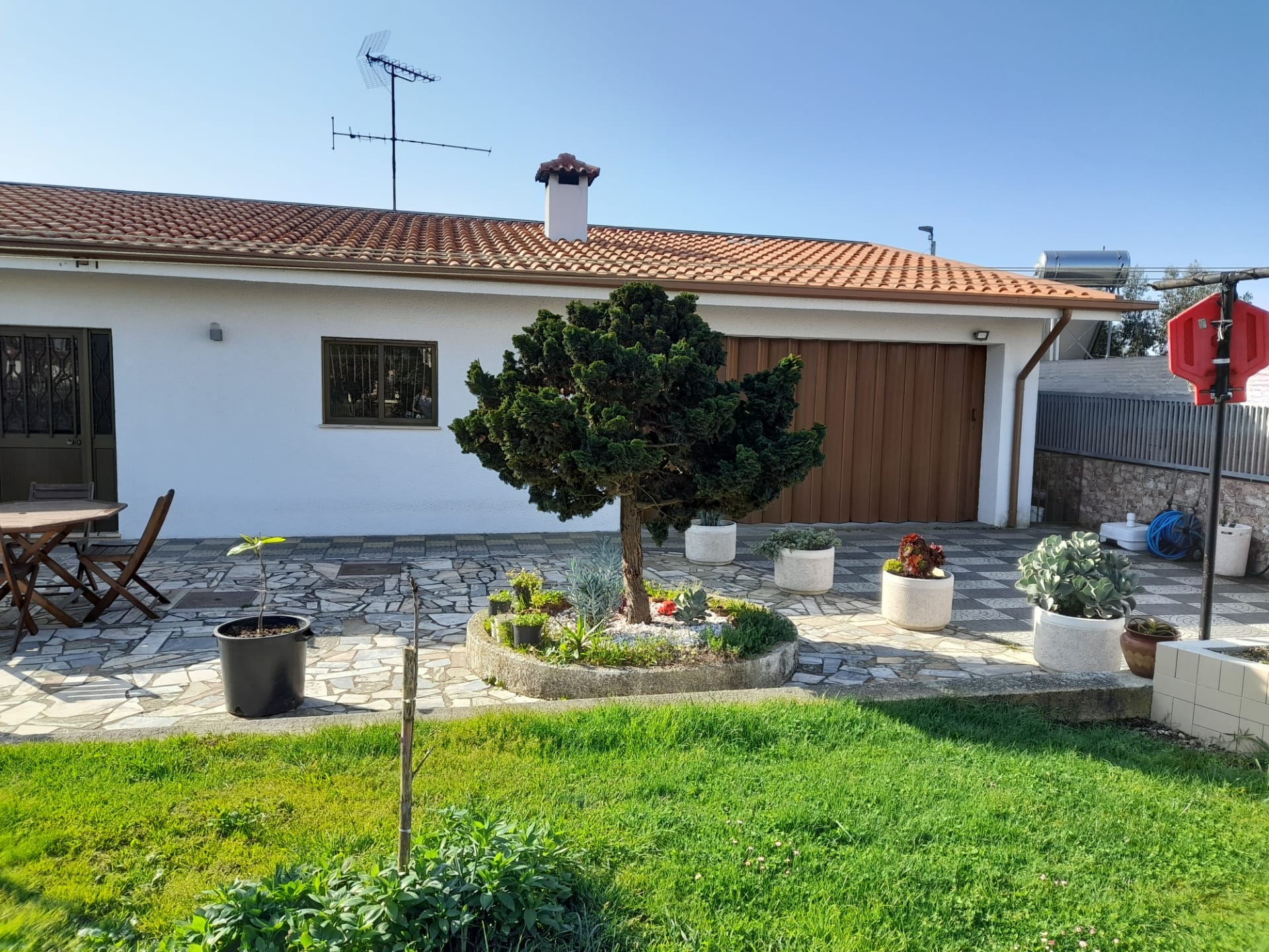 A l'extérieur, il y a également une petite annexe avec une chambre et une salle de bains, ainsi qu'un jardin avec des arbres fruitiers.