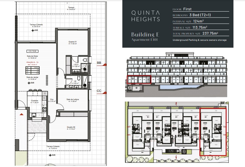 Quinta Heights présente une collection contemporaine de 130 appartements d'une, deux, trois et quatre chambres à coucher à vendre en Algarve. Situés dans un complexe exclusif, ils se trouvent dans l'un des quartiers les plus luxueux du centre de l'Algarve, au milieu d'un paysage naturel incomparable composé de la mer, de la campagne et des montagnes de Monchique. À Quinta Heights, vous ferez l'expérience d'un mode de vie exclusif. L'accès illimité à un spa luxueux, à une piscine et à un restaurant sur place vous donne la liberté de profiter d'un style de vie unique, tout cela depuis le seuil de votre appartement. Mettez-vous en appétit au restaurant de l'hôtel, qui propose une variété de délices culinaires, ou rendez-vous sur le toit-terrasse, qui abrite un nouveau bar à cocktails et à tapas. Les journées actives sont facilitées par l'accès à une variété de terrains de sport, à une nouvelle salle de sport et à un studio de yoga sur le toit. Posséder un appartement à Quinta Heights vous donne automatiquement une meilleure expérience du quartier, avec un ensemble unique de joyaux cachés à explorer. La plage caribéenne de Praia dos Caneiros, le village de pêcheurs typique de Ferragudo et Carvoeiro, avec ses vues panoramiques imprenables, en sont des exemples. Sur la rivière Arade, dans l'ouest de l'Algarve, Portimão est une ville portuaire plus animée avec un port de plaisance très fréquenté. Quinta Heights se trouve à proximité de deux terrains de golf verdoyants de 18 trous, et il est prévu d'élargir le répertoire golfique de la région. Pour plus de détails ou d'informations, veuillez nous contacter ! Liste des disponibilités : cliquez sur la fraction souhaitée pour plus de détails