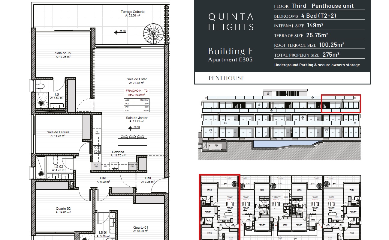 Quinta Heights présente une collection contemporaine de 130 appartements d'une, deux, trois et quatre chambres à coucher à vendre en Algarve. Situés dans un complexe exclusif, ils se trouvent dans l'un des quartiers les plus luxueux du centre de l'Algarve, au milieu d'un paysage naturel incomparable composé de la mer, de la campagne et des montagnes de Monchique. À Quinta Heights, vous ferez l'expérience d'un mode de vie exclusif. L'accès illimité à un spa luxueux, à une piscine et à un restaurant sur place vous donne la liberté de profiter d'un style de vie unique, tout cela depuis le seuil de votre appartement. Mettez-vous en appétit au restaurant de l'hôtel, qui propose une variété de délices culinaires, ou rendez-vous sur le toit-terrasse, qui abrite un nouveau bar à cocktails et à tapas. Les journées actives sont facilitées par l'accès à une variété de terrains de sport, à une nouvelle salle de sport et à un studio de yoga sur le toit. Posséder un appartement à Quinta Heights vous donne automatiquement une meilleure expérience du quartier, avec un ensemble unique de joyaux cachés à explorer. La plage caribéenne de Praia dos Caneiros, le village de pêcheurs typique de Ferragudo et Carvoeiro, avec ses vues panoramiques imprenables, en sont des exemples. Sur la rivière Arade, dans l'ouest de l'Algarve, Portimão est une ville portuaire plus animée avec un port de plaisance très fréquenté. Quinta Heights se trouve à proximité de deux terrains de golf verdoyants de 18 trous, et il est prévu d'élargir le répertoire golfique de la région. Pour plus de détails ou d'informations, veuillez nous contacter ! Liste des disponibilités :