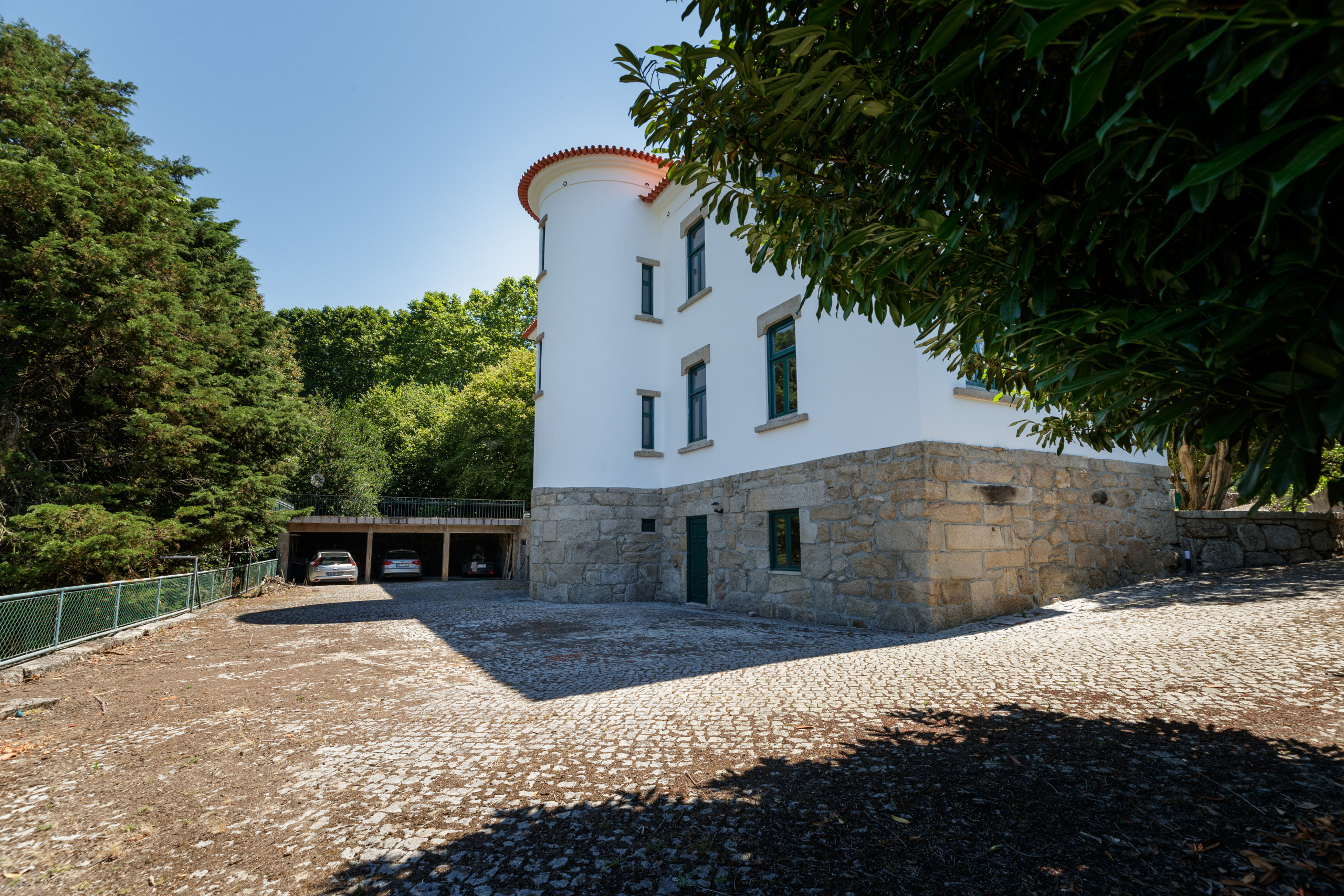 No exterior existe um vasto terreno com cerca de 1,2 hectares onde encontramos, uma vasta arborização.