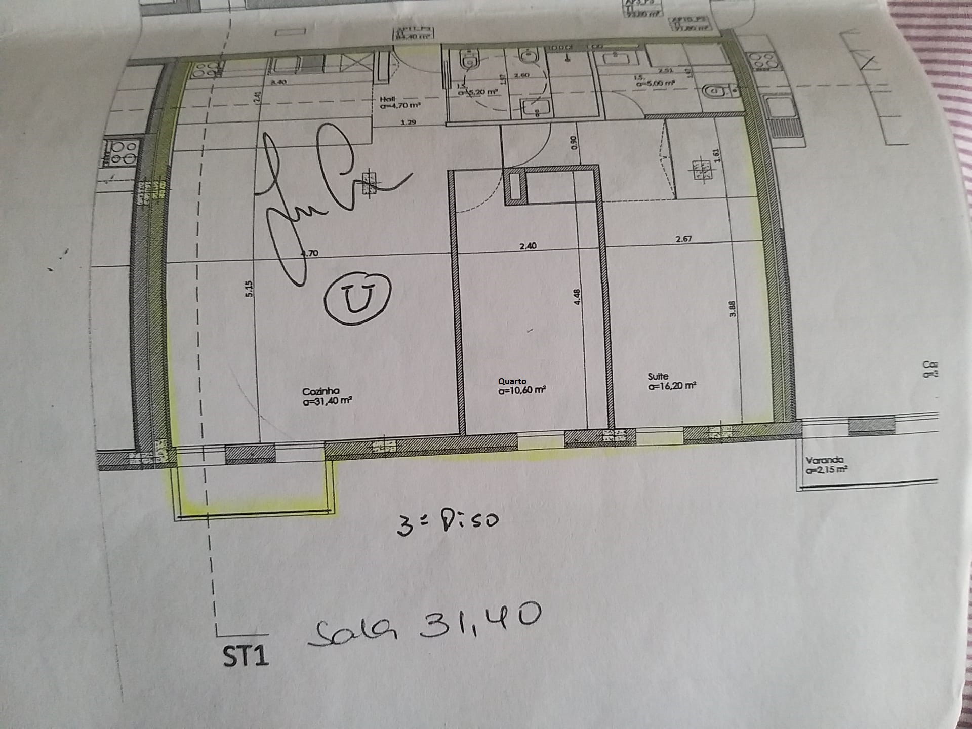 Apartamento distribuído por um pequeno hall de entrada, cozinha openspace e sala comum, varanda na sala, casa de banho completa de serviço, um quarto e quarto suite com closet.