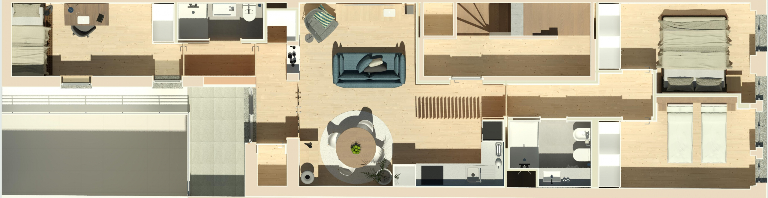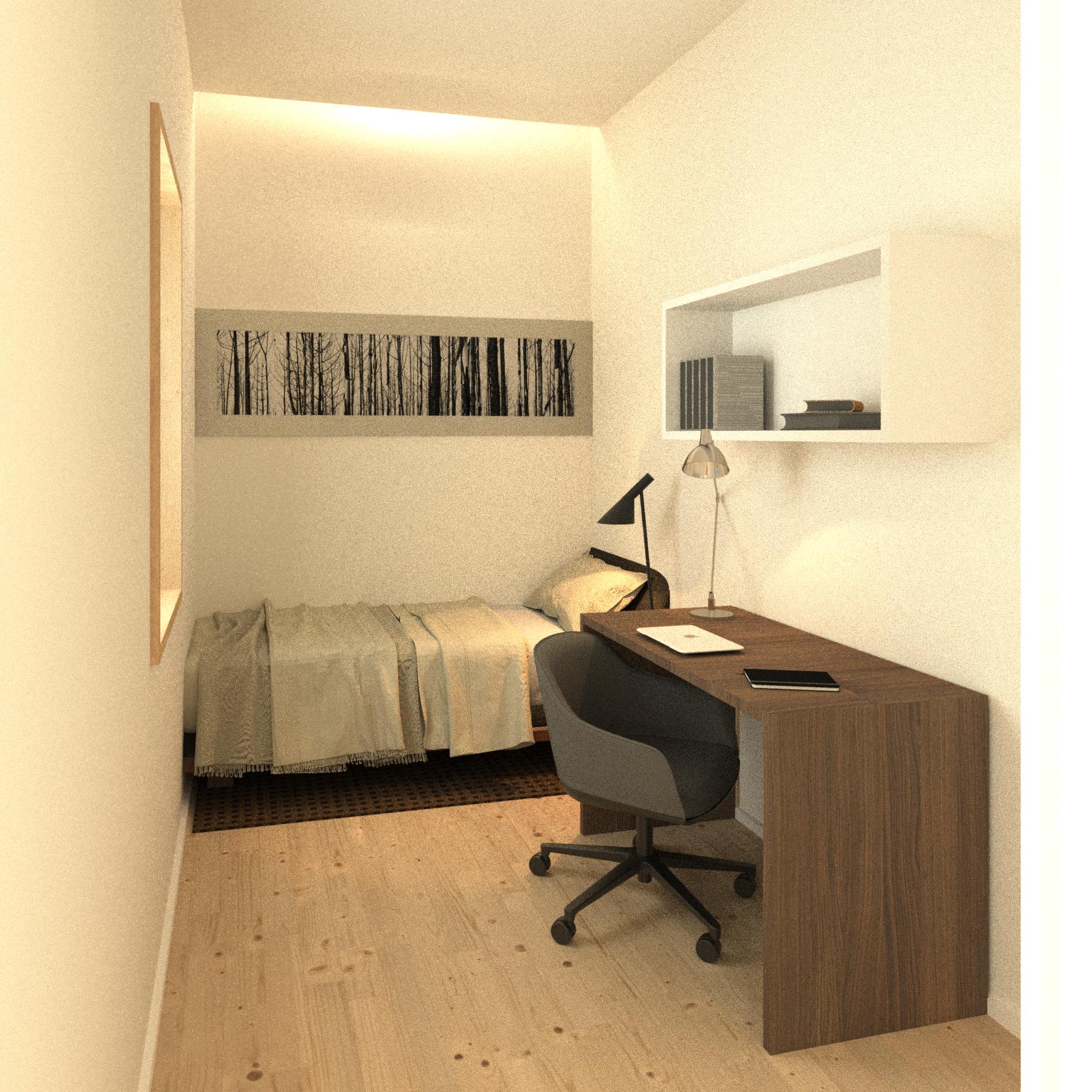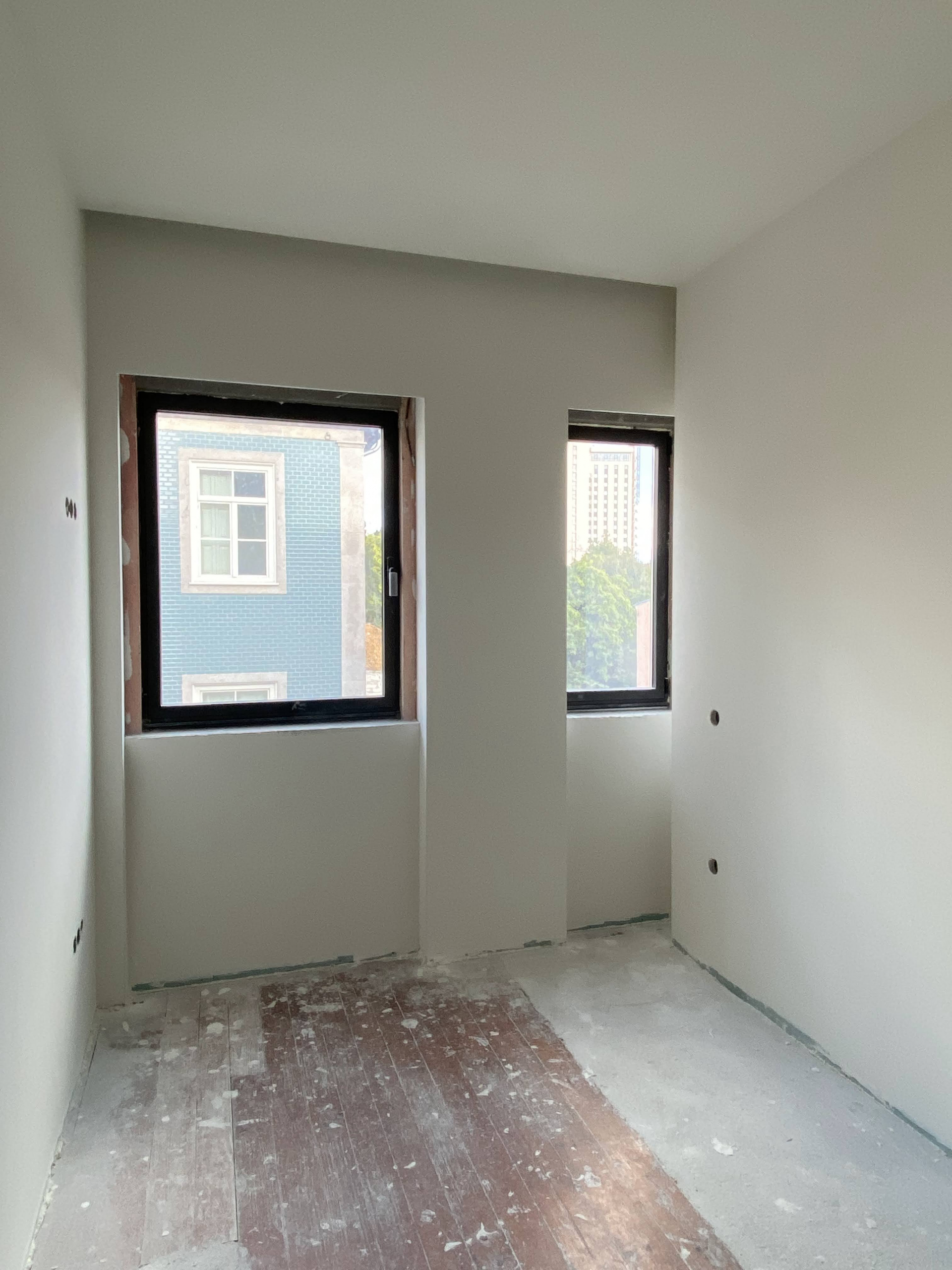 • Paredes estanhadas e pintadas na cor branco “Warm white”, RAL 9010.