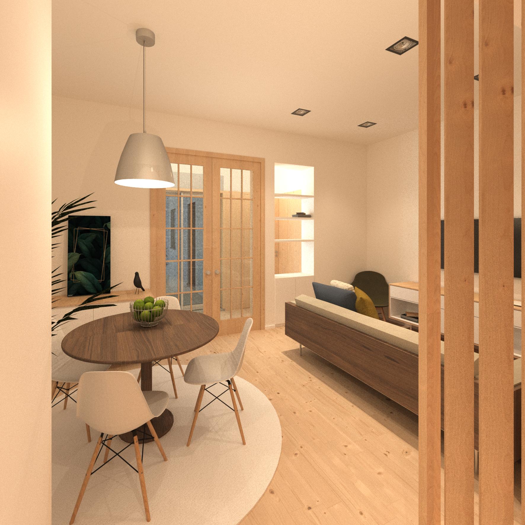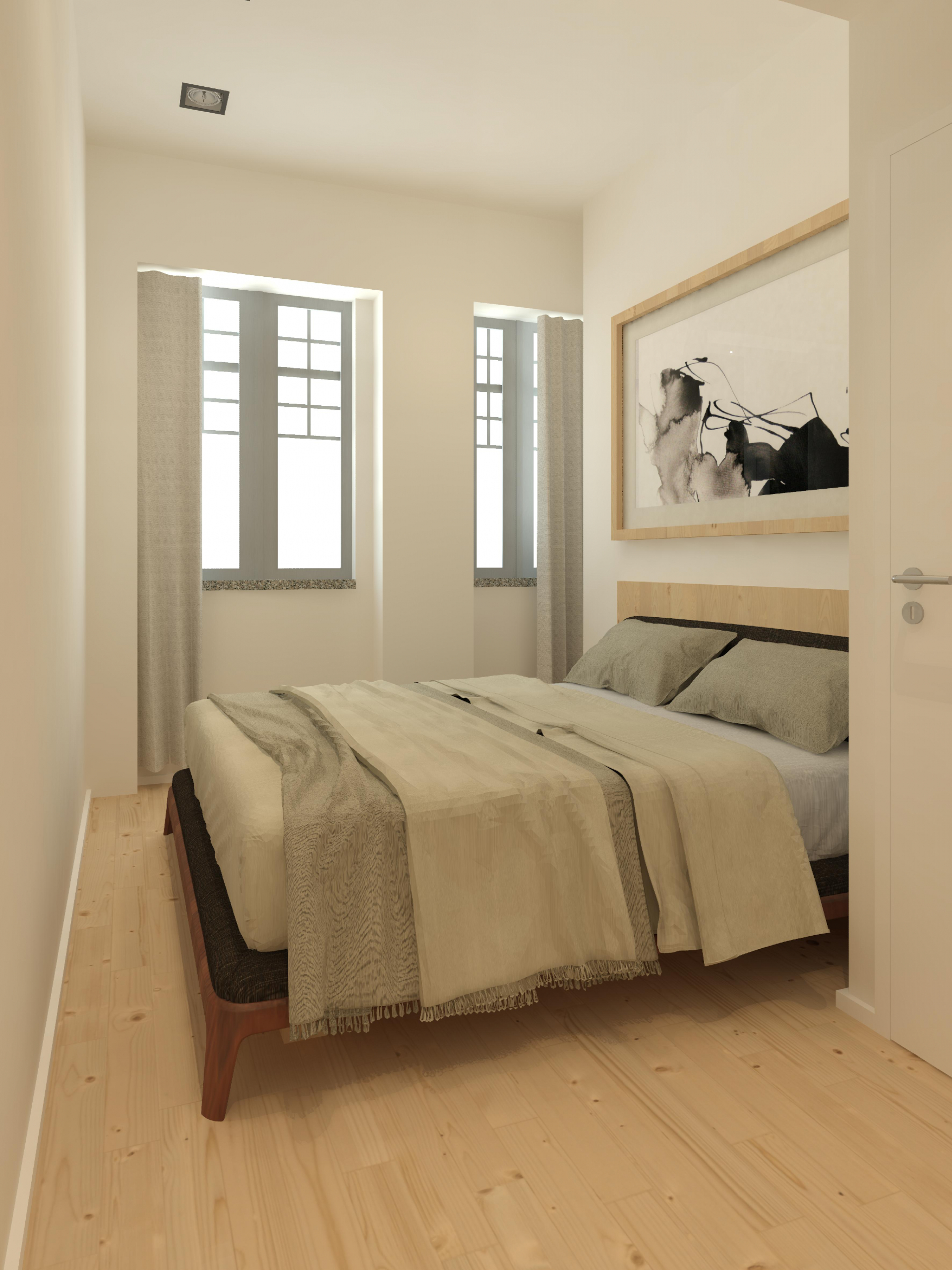 Apartamento totalmente remodelado, em prédio constituído por apenas 3 frações habitacionais, sem elevador e garagem.