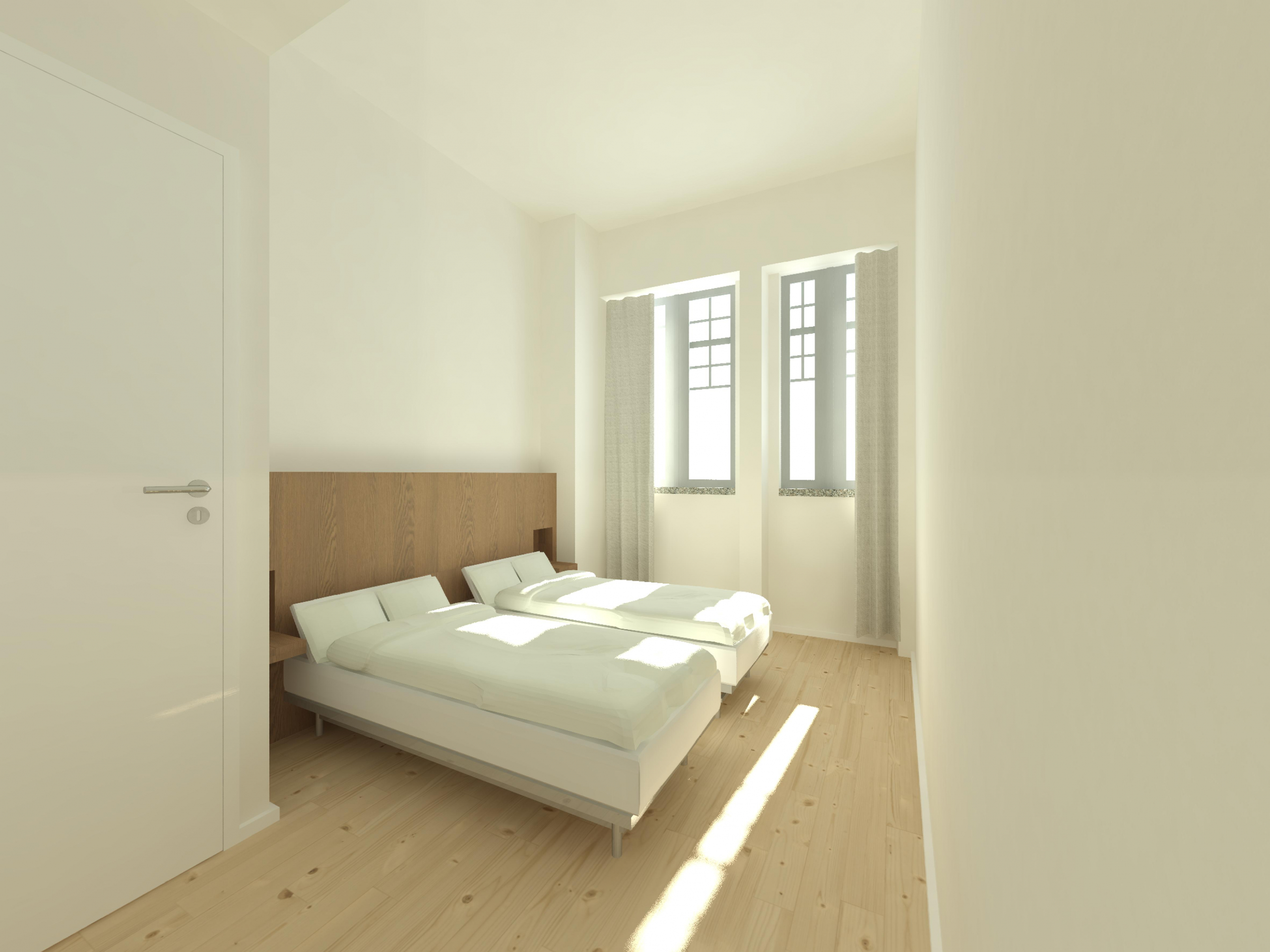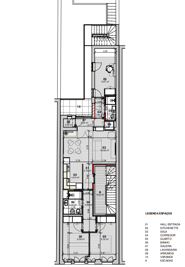 Tem a particularidade de existir apenas uma fração por piso e nas traseiras existe um jardim comum com cerca de 90m2.